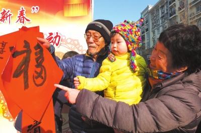 2月10日上午,程茂全、邓凌鹰等著名书法家在天桥斜街和天桥书画社十几名书法爱好者们一起,为市民写春联、写福字。京华时报记者张然通讯员周雯