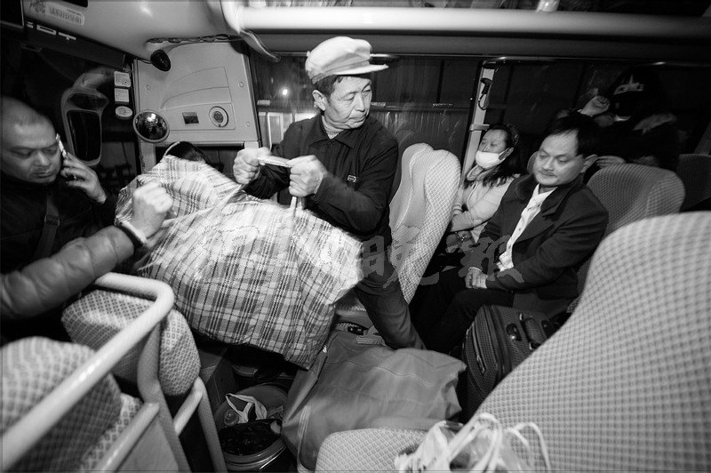 乘客李云贵告诉记者,他们大部分来自江西,在该地的建筑工地上工作,“这里的工程已经完成,所以这次回家,我们带上了棉被、衣服、水桶等所有的东西。”据了解,该大巴车由温州发往江西上饶一带,每位乘客的票价在200元上下,乘客们之所以选择乘坐该辆非法包车,是因为大部分乘客行李众多,而大巴车又承诺提供点到点的接送服务。