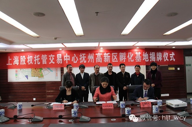 在签约仪式上,吴淑琴还与上海股权托管交易中心(以下简称:上股交)党委副书记、副总经理徐军,挂牌推荐单位邦盟汇骏集团上海公司(以下简称:邦盟汇骏公司)首席执行官王雪莲女士,三方一起签订了《上海股权托管交易中心江西抚州高新区企业挂牌孵化基地战略合作协议》。三方就“上海股权托管交易中心江西抚州高新区企业挂牌孵化基地(以下简称:上股交孵化基地)”的落户,达成一致意见,同时还进行了“上股交孵化基地”授牌仪式。