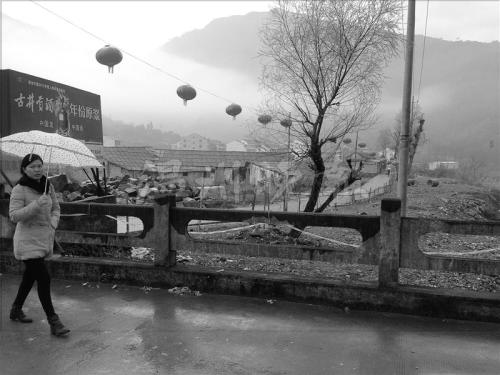 龙头村地处永嘉县西南部山区,从永嘉县城驱车前往约需20分钟。昨天,记者在淅沥小雨中来到了龙头村,该村进村口的小路仅5米多宽,路面两边堆放着废弃的泥石、砖块与烟花爆竹的灰烬,小路两侧的农地里散落着十来间闲置的小破屋。记者进村步行10来分钟,发现村内道路仅够一辆汽车行驶,不见成片绿化带,只有稀疏几棵树木。