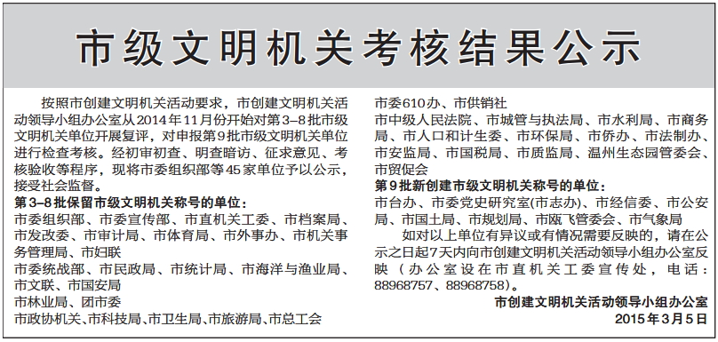 新闻热线:0577-86966000您所在的位置: 您当前的位置 : 龙湾新闻网  ->  公示公告  ->  通知公告 -> 正文