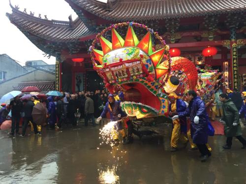 龙湾新闻网讯正月十三上午,横街村锣鼓喧天、彩旗招展,一片祥和喜庆气氛。正月十三上午,这是横街文化礼堂组织庆祝元宵节游龙灯活动,祈求新年风调雨顺、四季平安。游龙灯队伍浩浩荡荡长达400多米,有大龙、板凳龙、腰鼓队、军鼓队、木兰扇舞队、旱船队、抬阁楼队等组成。虽然天公不作美,阴雨绵绵,但活动还是吸引了众多的群众冒雨观看。(通讯员张晓勇)