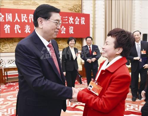 昨天下午,中共中央政治局常委、全国人大常委会委员长张德江,到浙江代表团参加审议政府工作报告,张德江在听取了12位全国人大代表的审议发言后,作了重要讲话,讲到一半,突然停下来,笑问:“温州的那位女代表来了吗?”