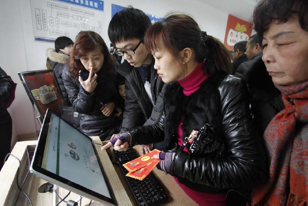 据悉,今年内我区计划将辖区内23家村邮站全面打造成电子商务服务点,通过市场化运作、政府推动的方式,让全区农村居民特别是老人们玩转电商。图为村民在村邮员的帮助下进行网上购物。(李希赛)