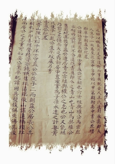 家谱中记载,陈宜中,青山陈氏六世子孙,是温州史上第一位丞相。陈宜中与清澳有种种渊源关系,在该谱得以体现,谱中对此有明确记载:“青奥即今之青山也,青山为与权公(陈宜中,字与权)旧游地,其后守益公迁居青山,亦继与权公之志也。”又据《兰溪陈氏宗谱》记载其祖始迁自“温郡清澳”,两谱互证,及其地貌与所云“两山如门,今名青岙门”又符。加上叶适《故知广州敷文阁待制薛公墓志铭》中有:“六年,高宗帆海入青奥门,幸水陆寺。”可见青奥与水陆寺相近,青山与水陆寺同属华盖乡。至此青奥即青山的结论可成定谳。
