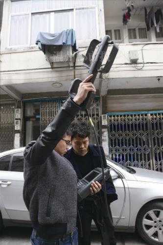 在该住户曾女士的配合下,监测人员在一楼墙上找到了一个拳头大小的塑料匣子,匣子的电线正连接在插座上。“就是它了。”工作人员举着检测仪对准小匣子,肯定地说。
