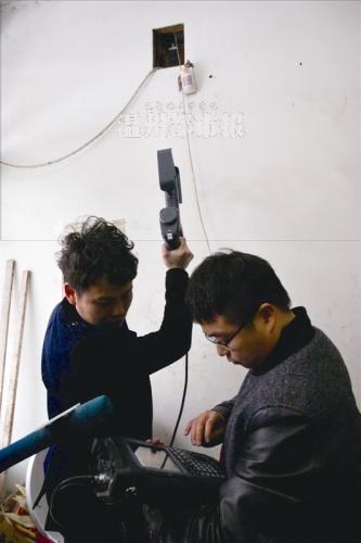 监测人员首先驾驶监测车在T字路口周围绕行,根据监测到的场强(无线电电场强度的简称)大小进行测向,最后确定信号源就在路口处附近,影响波及方圆百米之内。监测人员随后下车持便携式监测设备在路口附近查找信号源。最终在新欣路某号的一间落地房前,监测到了较大的场强。