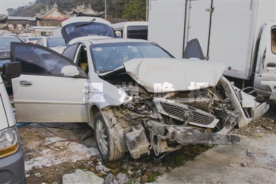 记者发现,事发现场就在有交通信号灯的十字路口附近,由于这里连接着瓯海大道,因此车流量非常大,由于车多,经过这里的车辆车速一般都不会太快,而这起事故中的车辆撞成了这样,需要非常大的撞击力,估计车速不会太慢。