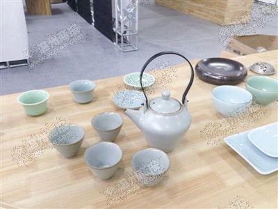 在龙泉青瓷展区,展区四周由一条条白色的横幅布置而成,一进展区就给人素雅、宁静,仿佛置身世外桃源的感觉,与一件件青瓷作品相得益彰。通过一件件青瓷作品,你或许能真切感受到作品所折射出来的文化、艺术等情境。记者询问了下价格,大多数的作品在百元以内。
