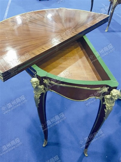 小到贵族小姐用的珠宝盒、家用玻璃酒器、浴室套件,大到展示柜、五斗橱,据艺术展工作人员介绍,此次展出大大小小的古董家居共有90多件,总价值至少一千万元,“这些古董家居基本上来自19世纪欧洲古堡,以法国为主,由于是纯手工打造,做工精湛,所以一张桌子、一个柜子都是价值几十万到上百万元不等。”