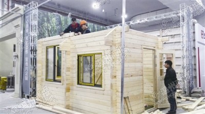 展区里搭起小木屋工业机器人华丽亮相