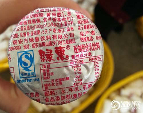 2015年2月6日,2月6日,有市民向瑞安市市场监督管理局热线举报,他在早餐店购买的早餐奶有问题,随后,瑞安市公安局民警同瑞安市市场监督管理局执法人员到了陶山镇某工业区内的瑞安市绿惠饮料有限公司进行检查。经过现场检查,其公司出售的乳制品包装上,发现有被人为涂改的痕迹。