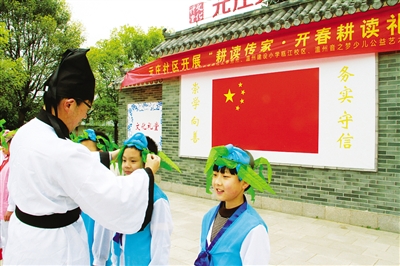 “孩子们还不太理解‘开春耕读礼’的内涵。不过至少他们可以牢记这一天老师的教诲。”温州市建设小学教师潘贤呈说道,今后该校学生,除定期在元庄社区文化礼堂接受国学知识的熏陶外,还将不定期在农技老师的带领下,参观元庄农庄,了解书本中学不到的劳技知识