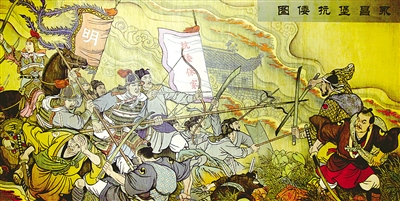 | 大型壁画《永昌堡抗倭图》局部。 |