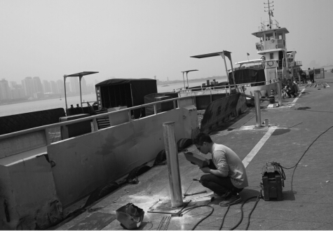 当天上午11时许,永嘉瓯北车渡码头入口处,一个隔离桩堵住了车辆的入口通道。记者在现场看到,四五名工人正在码头趸船上焊制护栏。一名工人说,他们准备在码头趸船上设置铁桩,并安装移动铁制护栏。