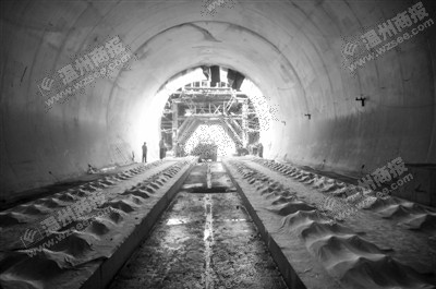 “华东第一隧道”施工遇到哪些困难?王超说,首先是隧道中部靠近泽雅水库,施工中容易打穿造成进水。“从2011年底就开始渗水,最大一次发生在2013年初,后来决定给隧道做防水层,并通过水渠导出渗水。”