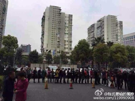 昨天有网友拍到房屋登记中心门口排长龙的图片。