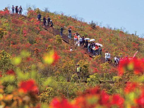 2013年年底,为了让杜鹃花更加密集,形成花海吸引游客,工作人员上山“砍柴”。不过砍的不是杜鹃花,而是杂草、杂树,以腾出更多空间让杜鹃花蔓延。