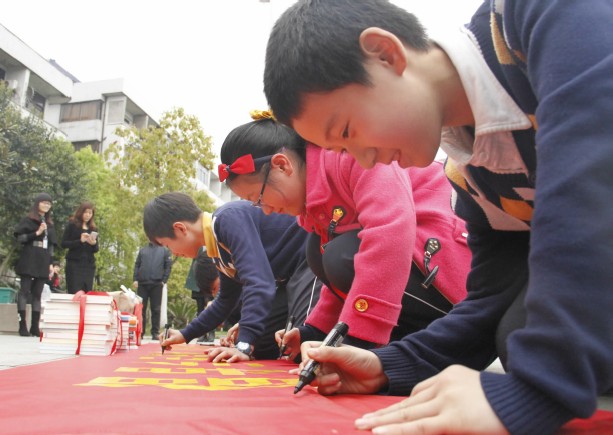 仪式上,全体未成年人发起了“爱读书,读好书”的倡议,区文明办为蟾南社区的“春泥书屋”捐赠未成年人图书500册,社区“春泥书屋”将充分利用好这批图书,有计划地做好图书更新,满足未成年人的课余阅读需求,把“春泥书屋”办成社区未成年人文化活动的主阵地。活动现场,来自海滨一小的学生还吟诵了《孟子五篇》等经典古诗文。仪式最后,孩子们还在“倡导全民阅读,建设书香社会”的横幅上签名留言。