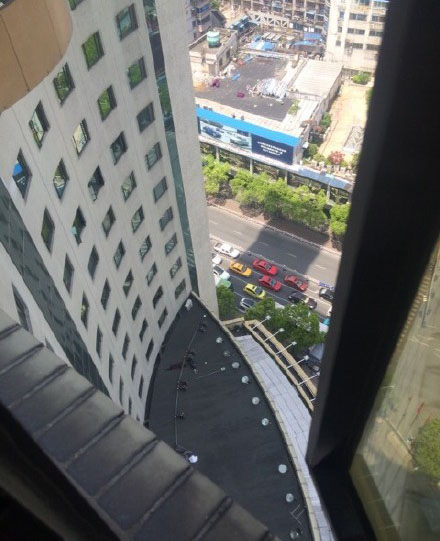 昨天下午,记者在现场看到,该酒店6楼是一家英语培训机构,发现男尸的阳台就在培训机构窗外,半圆形的阳台已经处理完毕,不见血迹。