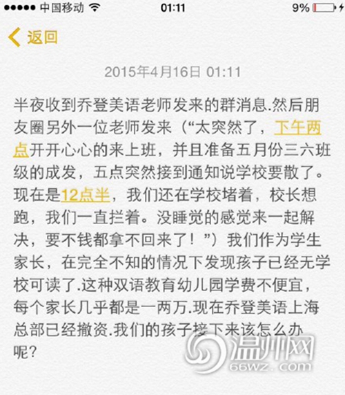 温州乔登美语劳资纠纷引恐慌 部分家长要求退学