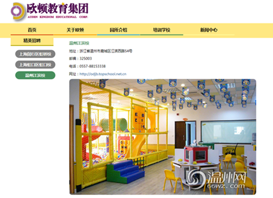 但记者从上海欧顿教育培训有限公司网站“欧顿教育集团”上看到,该集团将温州乔登美语培训机构作为集团的“温州江滨校”展现。