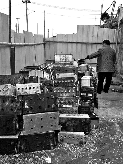 本月13日 ,苍南环保局与公安局联合执法,在龙港镇联友村查获两处露天废旧铅蓄电池收购点。收购点占地60平方米,现场发现3000个电瓶车废旧铅酸蓄电池,300个汽车废旧铅蓄电池和一编织袋电瓶密封盖等。废旧铅酸蓄电池随意堆放在场内,有一小部分废液通过雨水冲刷流入地面,没有任何防雨、防渗漏措施(如图)。