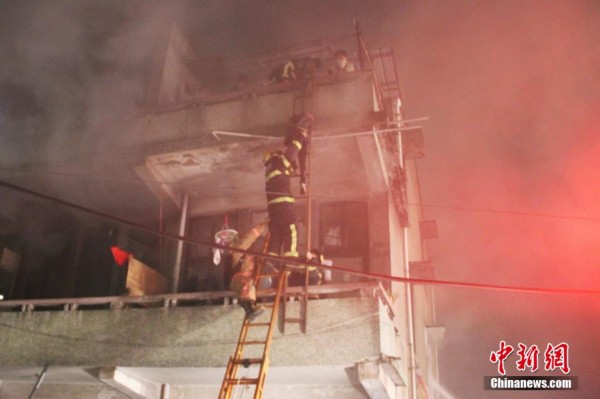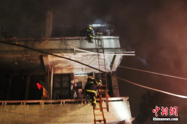 温州龙湾民房起火 消防员“梯连梯”救7人