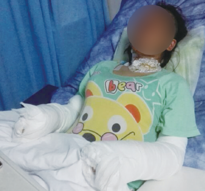 黄女士的脸部和手部都被严重烧伤
