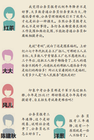 下降原因:市人力社保局公务员考录处有关人员介绍,这与我市今年首次参加全国同步招考及近几年“公务员热”有所减弱等有关。