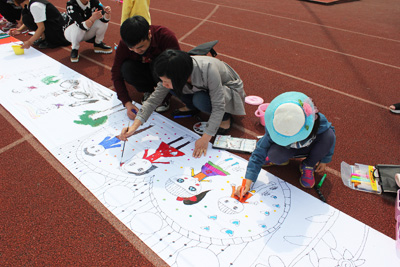 操场上,近百米的白色画布已经早早铺好,小朋友们纷纷拿出早就想好的草稿迫不及待地开始绘画。家长也被孩子们的热情感染,顾不得当头烈日,直接趴在画卷上涂抹。他们以“最美家庭”为主题,或描绘一家三口的肖像,或讲述家里发生的温馨故事,或勾勒对未来生活的想象。经过一个多小时的绘画,33幅作品悉数完成。五颜六色的画布,记录了亲子合作的有爱瞬间,讲述了每个人对美好家庭的追求,在阳光的照射下,显得格外动人。