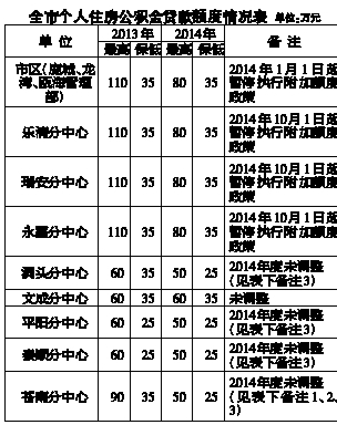 3、2013年9月1日起,平阳分中心、泰顺分中心个人住房公积金贷款最高额度调整为50万元;2013年12月1日起,洞头分中心、苍南分中心个人住房公积金贷款最高额度调整为50万元,最低额度调整为25万元;