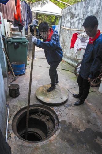 上午8时许,李师傅和几名“掏粪工”开着吸污车来到市区大南门虞师里社区。鹿城区有130多个公共厕所的化粪池,都是他们的管理范围,有时他们也会清洁一些社区的化粪池。