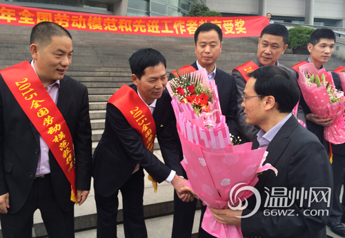 (记者张湉)4月27日上午,一辆载着温州市2015全国劳动模范和先进工作者的小巴车,在温州市大会堂前徐徐启动,前往机场赴京参加表彰大会。据悉,今年我市共有12人获此殊荣。