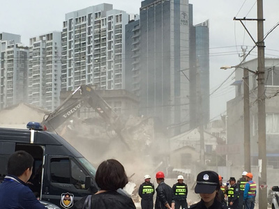 龙湾新闻网讯4月23日,龙湾区人民政府组织区委宣传部、区委维稳办、区新闻中心、区信访局、区公安分局、区司法局、区城管与执法局、区卫生局、区城市化建设办公室、区征管办、区规划分局、区国土资源分局、区房管分局、蒲州街道等部门联合执法,对蒲州街道汤家桥村(汤东)城中村改造项目未签订协议的4户房屋依法进行强制搬迁拆除。
