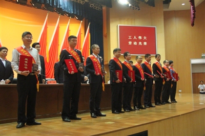 大会表彰了一批劳动模范和模范集体,授予方光佐等20位同志“2013-2014年度龙湾区(高新区)劳动模范”称号,特福隆集团有限公司等8家单位“2013-2014年度龙湾区(高新区)模范集体”称号。