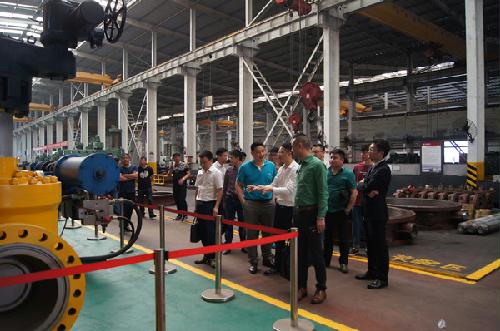 第二站,考察团走进江南控股集团。在集团总裁黄子龙的带领下,考察团参观了产品展示厅和生产车间。黄总给考察团人员介绍,江南控股集团涉及产业很多,但集团侧重点仍在阀门上,通过产品的自主研发和科技创新,以性能卓越质量领先的产品赢得市场,以良好经济效益力促企业快速发展。