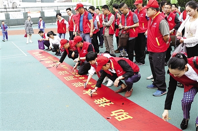 近日,市委党校组织2015年第一期城区中青班65名学员参加“进村入户”锻炼。在龙湾普门村进行助力“水岸同治”系列宣教活动中,学员们入村打扫,并在倡议横幅上签下自己的名字。 陈出 摄