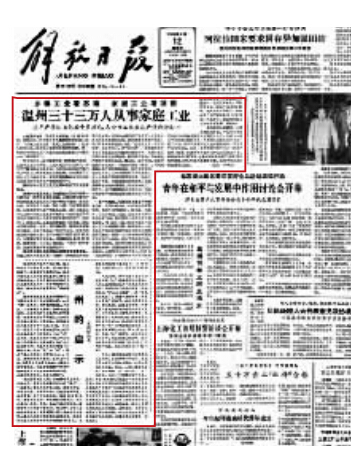 今天,对温州来说是个有着特殊意义的日子:30年前的5月12日,《解放日报》头版头条刊发题为《温州33万人从事家庭工业》的长篇报道,并配发评论员文章《温州的启示》,标志着“温州模式”的横空出世。