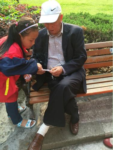 龙湾新闻网讯5月7日下午,蒲三社区爱心驿站430课堂小小志愿者身穿红马甲,在蒲三社区辖区范围内分发“温州医科大学附属眼视光医院社区眼部健康筛查券”。小小志愿者向路人热情介绍本次活动,鼓励领券者发动家中老人,走出家门,享受社区福利。