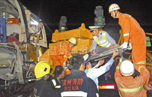 事发后,温医大附二院急诊科陆续接到伤员,其中年纪最大的52岁,最小的仅1岁多。伤者基本为胸、腰椎、下肢、颧骨骨折,还有肺挫伤、肝挫伤和软组织挫伤的外伤病人。目前尚有5人留院观察。