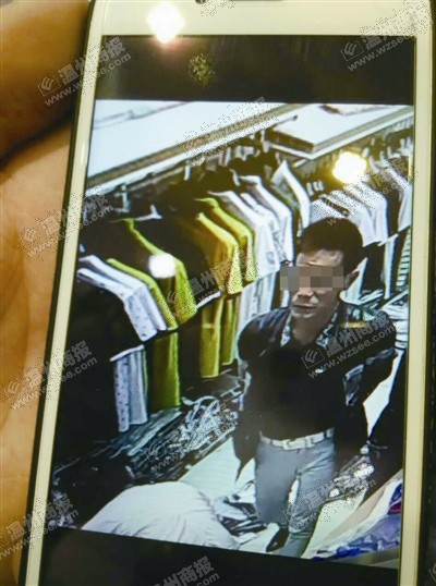 上周四上午,在市区施水寮的一家服装店里,一名男子趁着三名店员整理衣物之际,假装看衣服,偷偷靠近柜台拿走了上面的iPhone6手机,店主张先生发现后立即报警,并调取监控。