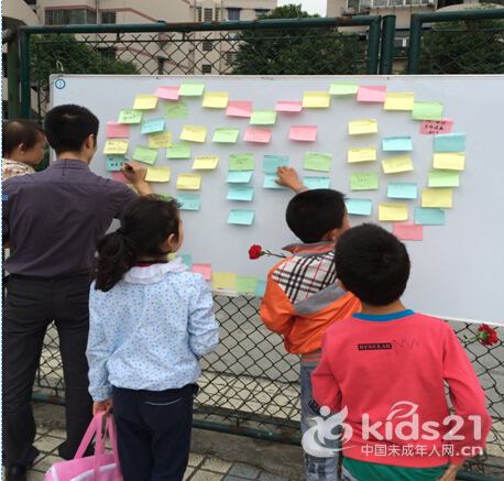 早上9:00,广场上响起熟悉的旋律--《世上只有妈妈好》,吸引了许多广场上打球和路过的社区居民。此次活动内容主要分为三部分,第一个部分是“爱的承诺”,小朋友承诺回家给妈妈洗脚将免费获得一支红色康乃馨送给妈妈。小朋友们在妈妈和工作人员的鼓励下,把康乃馨送给妈妈,稚嫩的声音说出:“妈妈,我爱你!”。可爱的小朋友们都点头承诺回家给妈妈洗脚,这样的画面真美、很有爱。第二个部分是“爱的祝福”,现场大人小孩都在彩色卡纸上写下自己对母亲的祝福或想说的话,并亲手贴在爱心展板里,然后为妈妈选一朵最鲜艳的康乃馨开心地回家送给妈妈。第三个部分是“爱的话语”,志愿者们鼓励社区居民在这一天给妈妈打电话并在横幅上签名留念。