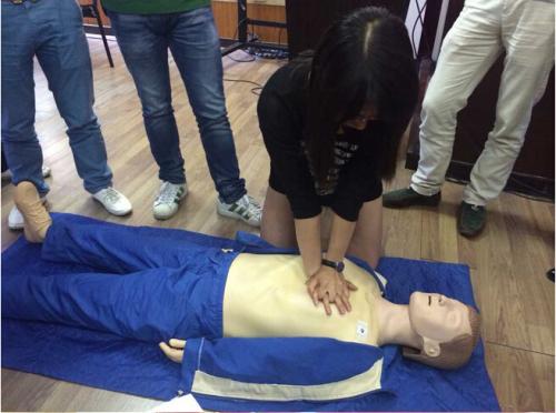 区红十字会救护员培训师围绕红十字会基本知识、心肺复苏术(CPR)、创伤救护(止血、包扎、骨折固定、搬运)等展开讲解,并在模具上详细地进行了示范演示。现场还和工作人员进行了互动教学,大家踊跃参加,通过亲自操作人体模型,进一步巩固了所学知识,掌握了现场急救的基本技能。大家表示,这堂课很实用,当遇见意外伤害时,可以进行紧急的简单救护,为今后更好地救助突发事件现场的伤者积累了宝贵经验。
