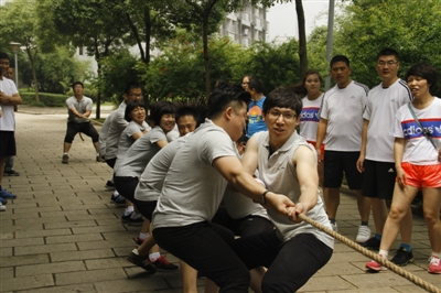 龙湾新闻网讯 日前,龙湾区(高新区)第二届职工文化节“欧斯达”杯全区职工趣味运动会在龙湾中学举行,全区机关、企事业单位共组成105支代表队,1680余名职工参赛。本次运动会由拔河比赛、铁人三项、袋鼠跳、托球跑接力等五个环节组成,都是以趣味为主题,让职工在快乐中享受运动,在欢笑中锻炼身体。(陈出 摄)