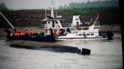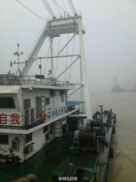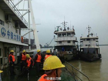 【中铁大桥局抢险救援队赶赴事故现场】事故发生后,中铁大桥局成立由22人组成的抢险救援队。救援设备由三艘船只组成编队,其中拖轮二艘,160吨浮吊一艘。另专门配有氧气、乙炔、钢丝绳等救援物资。救援队乘坐救援船队于11时零5分启航赶赴事故现场,预计晚上6时抵达。(湖北日报 记者廖志慧)