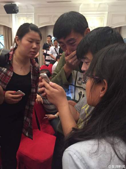 【获救65岁老人之子看到母亲被救照片泪流不止】6月2日下午2点半,南京一酒店内,曹峰、曹岑兄弟看到母亲朱红美在湖北被救出的消息后,泪流不止。曹峰说,他的爸爸也在船上,目前生死不明。
