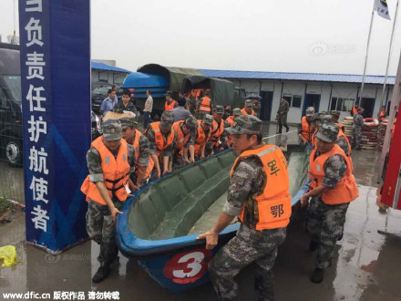 【救援现场】湖北陆军预备役舟桥团出动冲锋舟9艘,操舟机9台,现役官兵40余人,监利出动民兵应急分队300人,第一时间赶赴事发现场,速度进行了卸舟装机。舟桥旅出动100余人,20台车,携带18艘冲锋舟,两艘救护汽艇,以及部分应急救援器材正在赶往事故发生地,预计上午11点赶到。