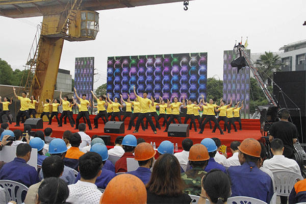 龙湾新闻网讯 6月9日,2015年温州市职工文艺秀龙湾专场在泰昌厂区隆重开演。由全区各行各业职工自编自演及各文化礼堂选送的11个节目为大家献上了一份文艺大餐。此次演出,节目丰富、形式多样,涵盖大合唱、打击乐、歌曲、朗诵、情景剧、魔术、小品等,充分展示了我区广大职工爱岗敬业、积极向上、团结拼搏和多才多艺的精神风貌。区委副书记、政法委书记黄阳栩和700多名职工群众一同观看演出。(陈出 摄)