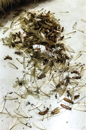 家住华盖山旁的林先生出门没关窗户,晚上回家扫了一地的白蚁。杨冰杰摄
